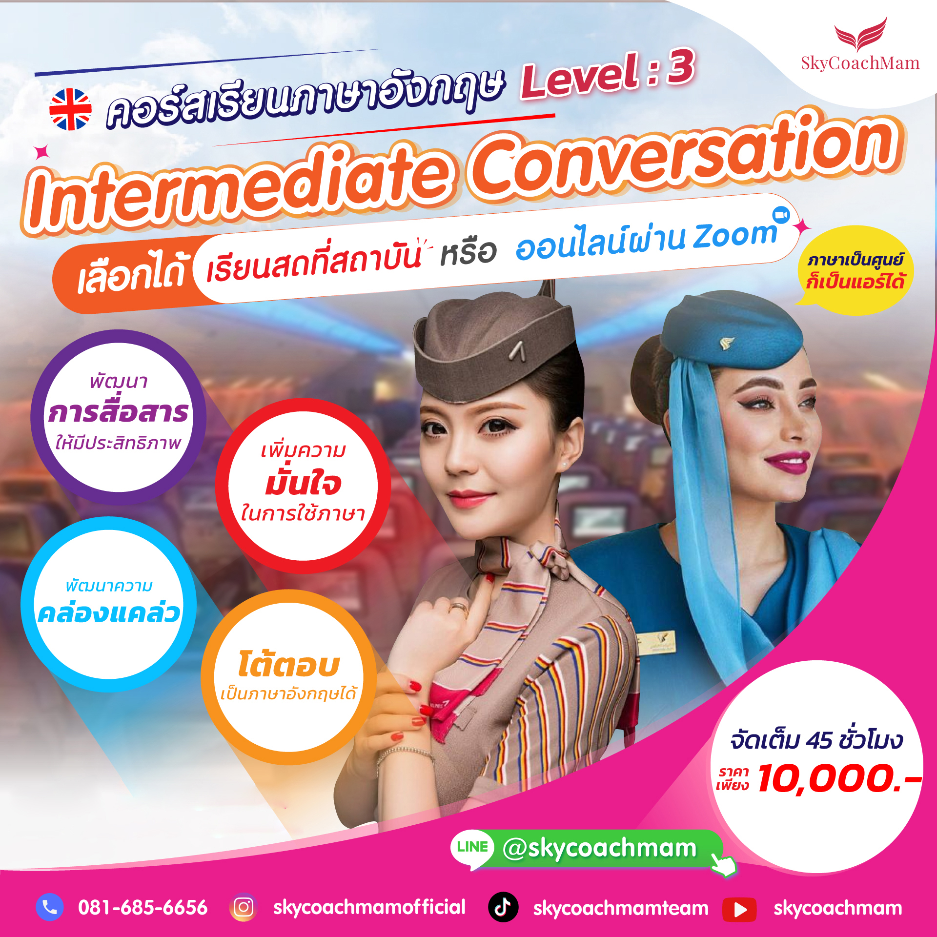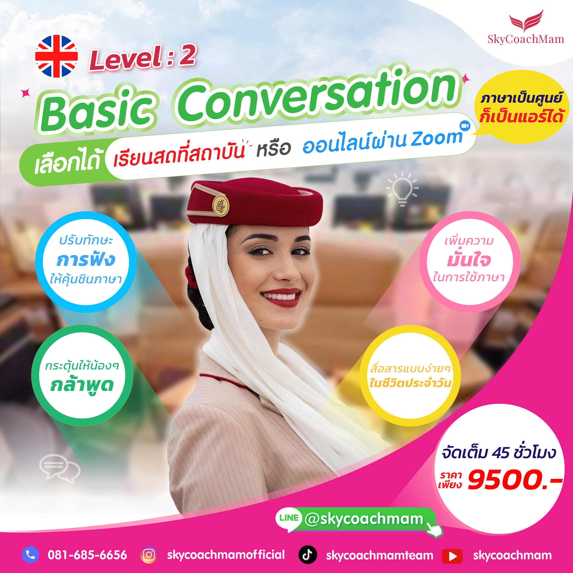 คอร์ส English Conversation เป็นหลักสูตรที่มุ่งพัฒนาทักษะการสื่อสารภาษาอังกฤษเพื่อเน้นให้ผู้เรียนสื่อสารได้อย่างเป็นธรรมชาติ พร้อมกับทำความเข้าใจ และเสริมสร้างทักษะการพูดภาษาอังกฤษให้ดีขึ้น ทักษะทางการสื่อสารถือเป็นส่วนสำคัญในการเข้ารับการสัมภาษณ์งาน โดยสามารถเรียนควบคู่ไปได้กับคอร์ส TOEIC ONLINE ได้