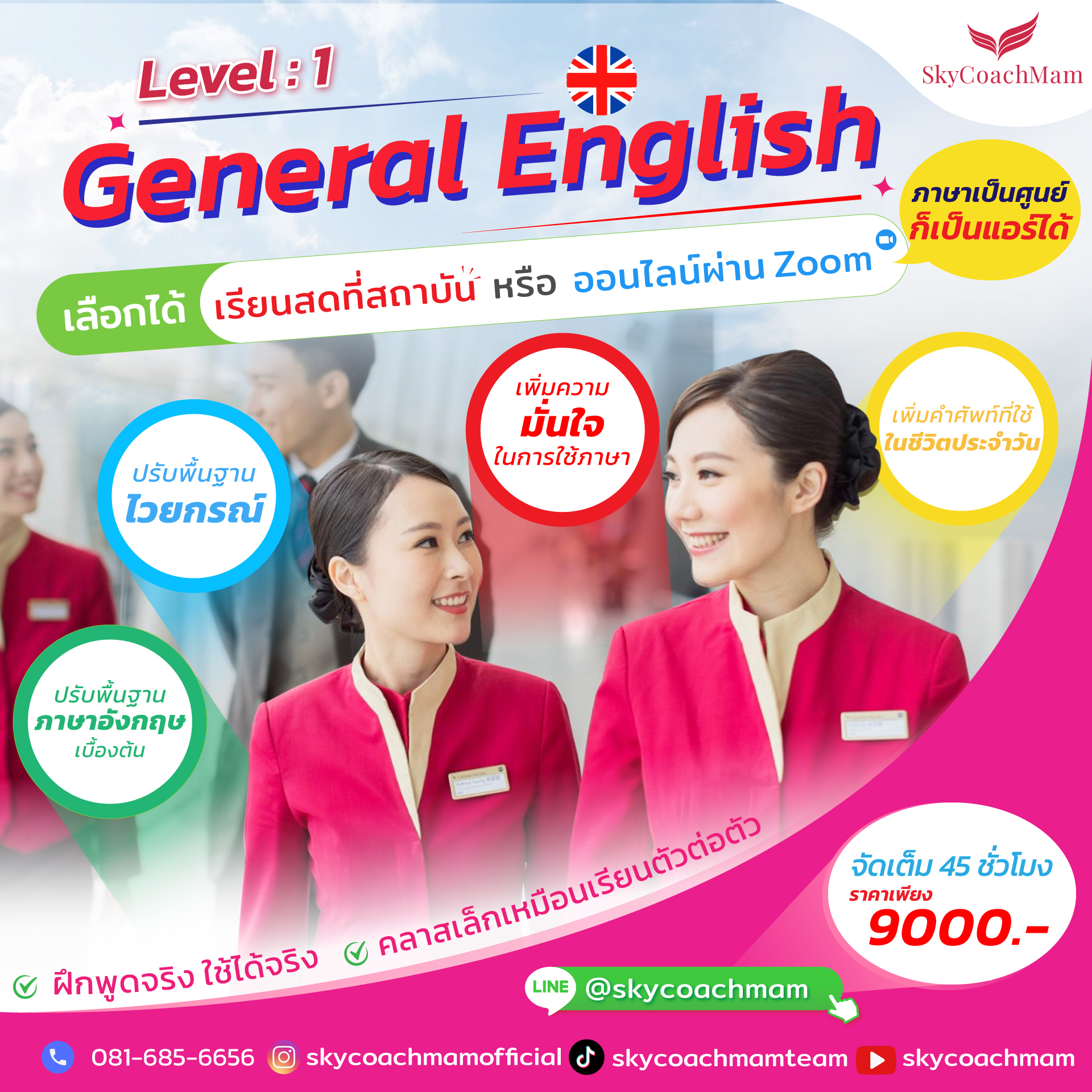 คอร์สเรียน มีทั้งหมด 5 ระดับด้วยกัน เพื่อตอบสนองและพัฒนาทักษะทางการสื่อสารของน้องๆได้อย่างตรงจุด และเน้นให้ผู้เรียนได้รับความรู้และการดูแลได้อย่างทั่วถึง